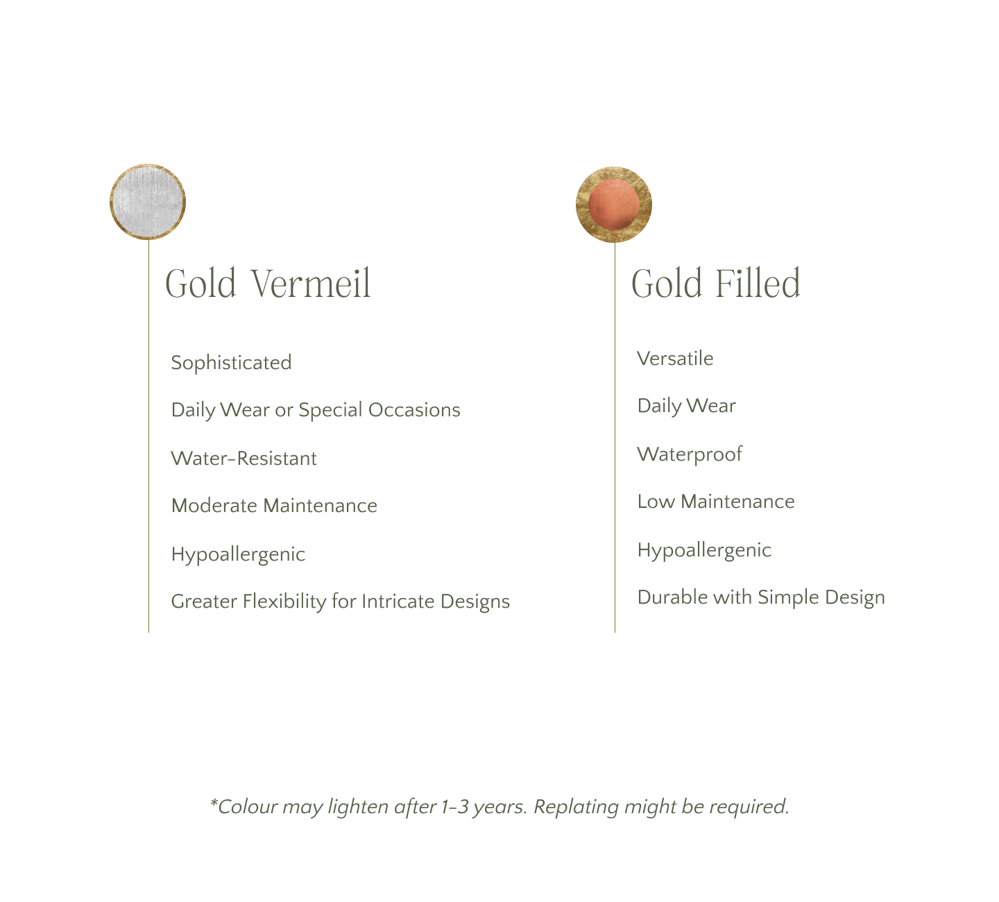 Opt for Gold Filled if you need durable, low-maintenance jewellery for daily wear. Choose Gold Vermeil* for sophisticated, hypoallergenic designs suited for special occasions. Both options combine beauty and value—pick the one that best aligns with your lifestyle and preferences.